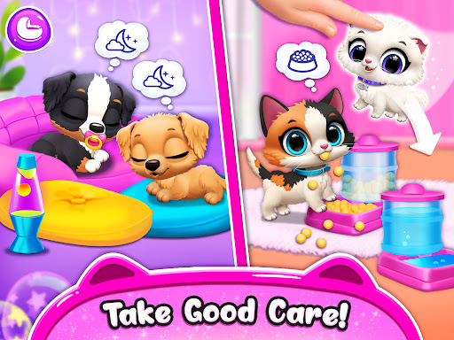 - Take care of your virtual pets in a pet world & make sure they’re happy!
