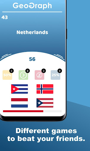 Country / Flag: If you think that the Country / Flag mode is not a challenge for you, try it in reverse. In this mode, GeoGraph will challenge you to pick the correct flag of the country asked.