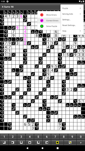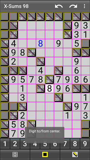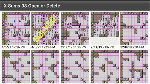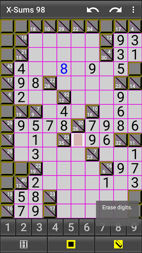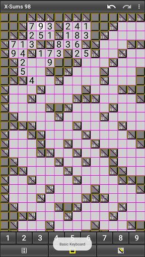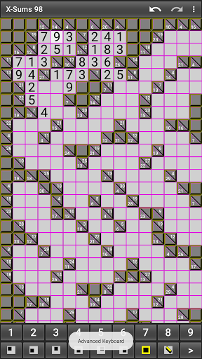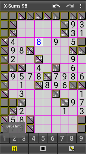 X-Sums 98 is free and has no ads. Create as many Kakuro (Cross Sums) puzzles as you wish in small to huge sizes! (over 200 sizes)