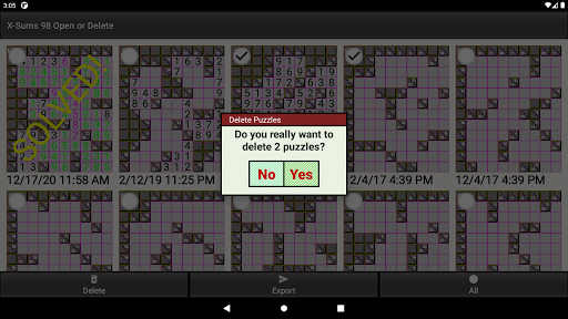You can select one or more saved Kakuro puzzles and export them as a ZIP file.