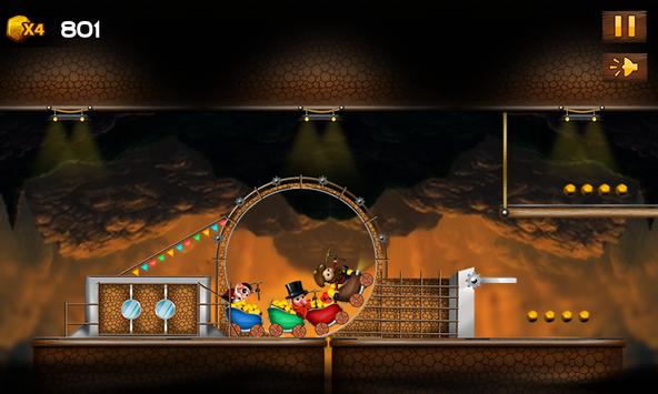 Take his mates along the road to double your coins and reach the finish line. Be careful!! You need to keep them close to you in order to accomplish your missions and get to safety together. Drive the fun train and race to get gold !