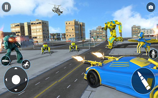 In Robot Car Transformer Supercar fights mafia robots that want to take control of the city in the United States. In this auto robot transformation game, you may train your robot to combat mafia robots. In future robot games, you can control the transformation and shooting of automobiles and robots, or you may go on a shooting rampage with transforming robots. In auto robot transforming game 2020, take on several transforming robot war games tasks in one fresh new big criminal city robot transforming the game. Play futuristic automobile change robot shooting games, as well as rescue survival robot and adventure casual games in the year 2020.