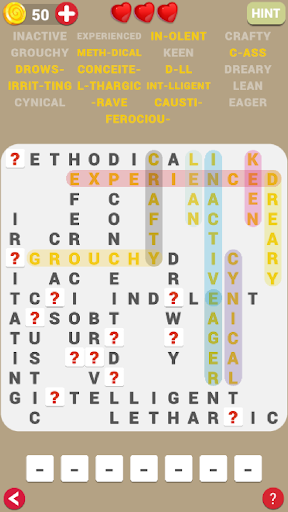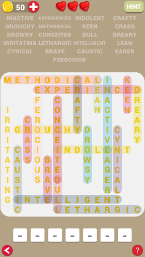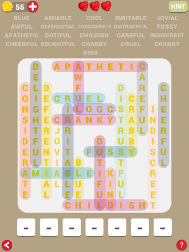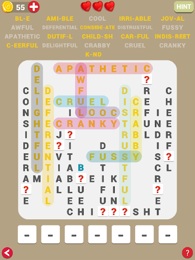 Let take a break and solve every level of this amazing game, Word Fill Puzzle. Each Level require you to fill a letter for a hidden letter or a red question mark.