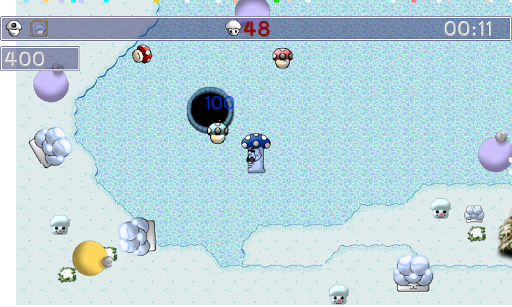 Cute as they may be, this fungal frenzy is getting out of hand. Time to put these cute little guys back in their place. Like the bouncer at any exclusive club, it's time to bum-rush these mushrooms down whatever convenient hole you can find!