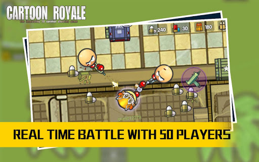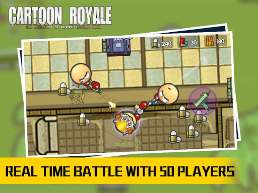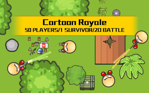 Cartoon Royale will match 50 online players for you in real time, you can search and loot props in a security zone, fight with other players, the last survivor wins.