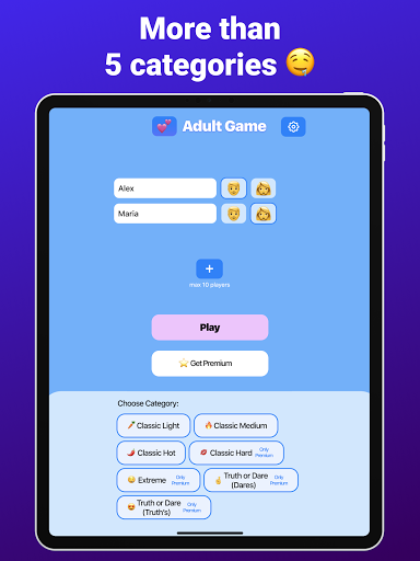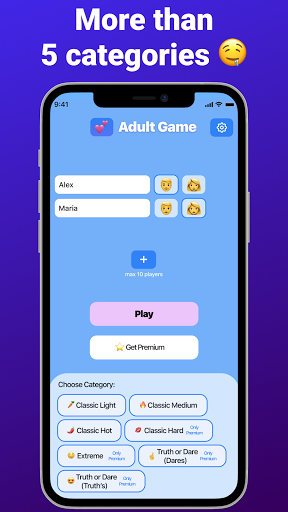 The truth or dare game is divided into 7 difficulty levels. Find the perfect balance between levels - turn the desired level on and off. You can choose everything at once!