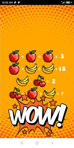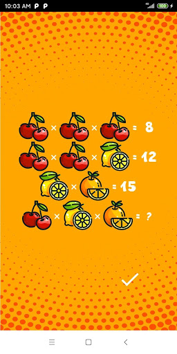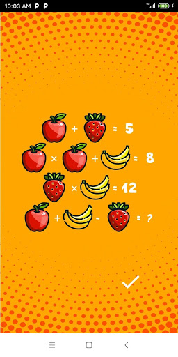 The game has seven levels, each level has system of equations, where the variables are fruits.