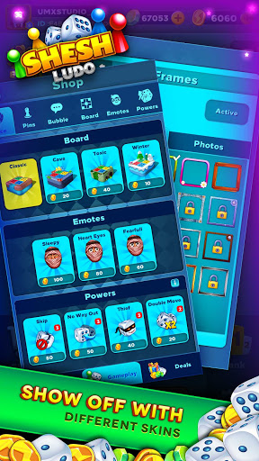 - Shop new Skins for Gameboards, Pins, Dices from shops