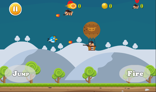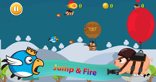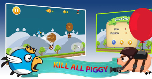 "Bird vs Pigs" is one of our series games about birds from Unicorn Game Studios. In this game, you only need to click Jump button to fly up, eat coin to get fire bullet (10 coin = 1 fire bullet) and click Fire button to kill piggies. Beside that, you can kill piggy by hit the balloon.