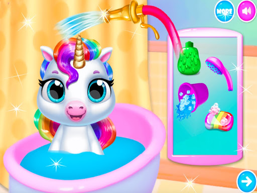 You have a beautiful unicorn pet pony as a gift from God. So you should take care of the nursery heart unicorn sweet pet. Show your love for the cutest unicorn pet. Cover a colorful egg and take care of your newborn unicorn by dressing it up, giving it food, cake decorations, a bath, mouthpick, hairstyle and hatching eggs in an animal nursery.