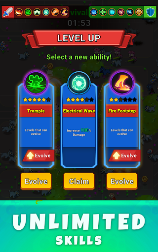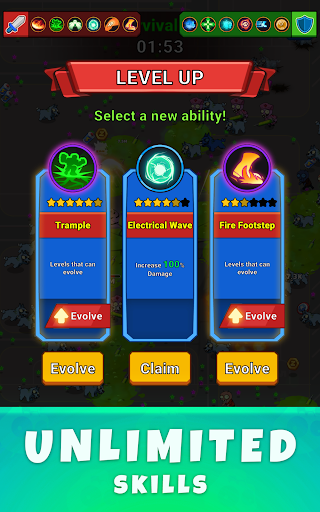 There are many characters to choose from with different skills and powers. Choose your favorite character to accompany you in many upcoming survival battles.