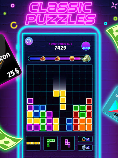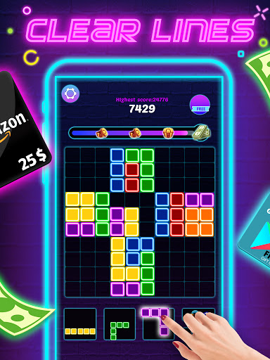Color Block – Glow Block Puzzle Game is a fun and classic FREE block puzzle game! The perfect game to test your brain, have fun, and randomly get real money as rewards!