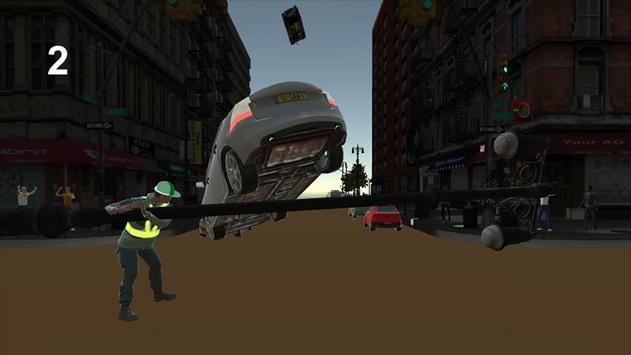 A car is thrown to you. If you tap a screen, the batter swing a traffic signal pole. Hit a car by the pole!!