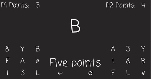 Reflexes are very important in this game: the first to press the character displayed on the screen gets a point, but be careful if you miss the point it will go to your opponent.