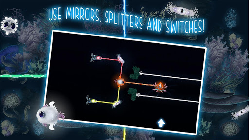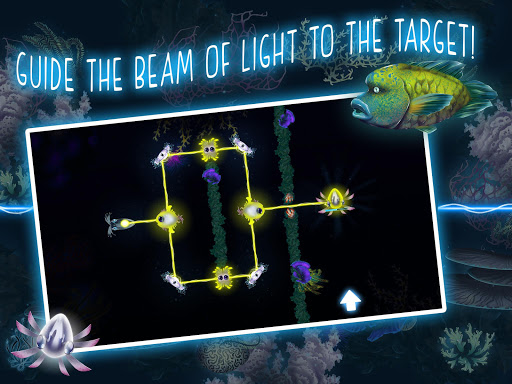 Dive into the darkest depths of the ocean and experience the logic game adventure of a lifetime with Glowing Darkness. Far below the reaches of the sun’s warming rays, there’s only a single source of light: squids that create light beams. Your task in this captivating puzzle app is to direct this beam of light to a target with the help of the unique creatures in the ocean’s depths. Skillful use of friendly flounders, artfully decorated mirrors, and exotic teleports will allow you to split, redirect, transfer, and guide your beam of light to a target in this logic game. Prove your combination skills and train your concentration in Glowing Darkness. Experience a multitude of fantastic features in this unusual and extraordinary puzzle game that lets you play with the physics of light in a fantasy setting. Some of Glowing Darkness’ many highlights include: