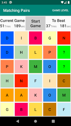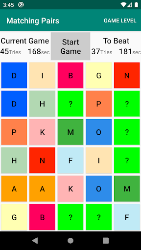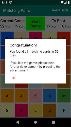 • The game is over when you have found all matching pairs.