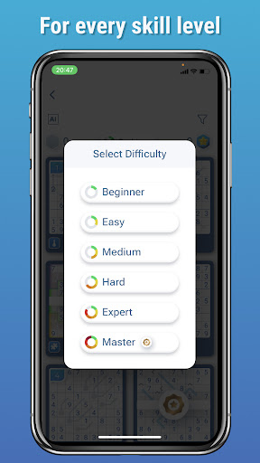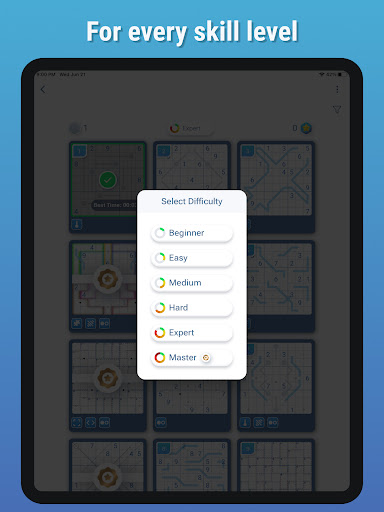 Our unique AI technology analyzes your playing style and preferences to curate personalized puzzle selections, ensuring that you're always challenged and entertained. With six difficulty levels, from Beginner to Master, you'll find the perfect level to keep you engaged and progressing.