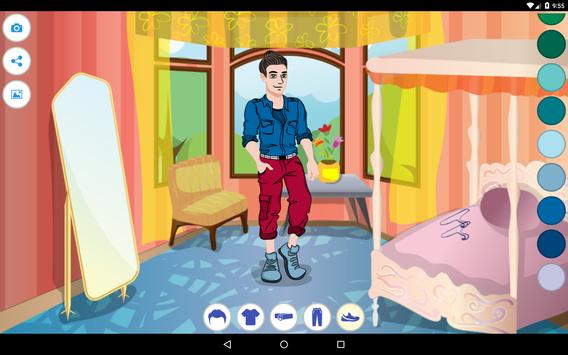 - Play with different clothes to create the perfect look: pants, t-shirts, sweaters, shorts and shoes in several models and colors!