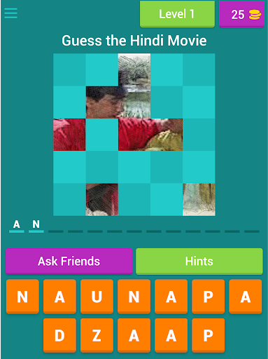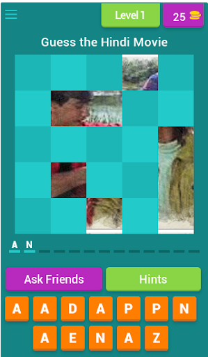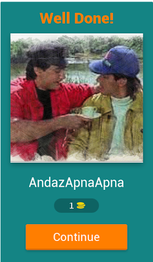 A picture puzzle, the player tries to guess the name of the famous Hindi movie by looking at a snap from the movie. With latest and classic movies, there is a large collection of movies to guess and climb the levels. Earn coins with every right answer and use them when you are stuck at a level. You can also earn coins by recommending the app to your friends.