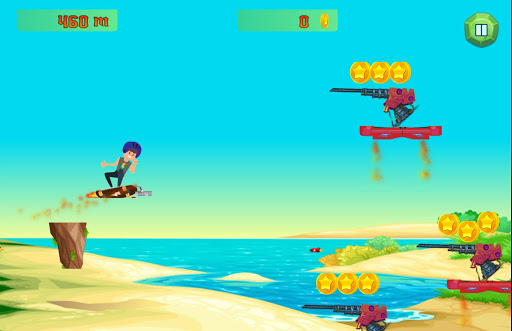The game of adventurer is a small adventurer on the skateboard skate shaved space and exposed during the flight to the obstacles and risks and adventures of a beautiful game consists of several obstacles such as missiles, birds, bombs and other difficult obstacles that must be careful and pass them successfully and can remove these obstacles from the way by shooting It contains a powerful weapon called firearm the best adventure games
