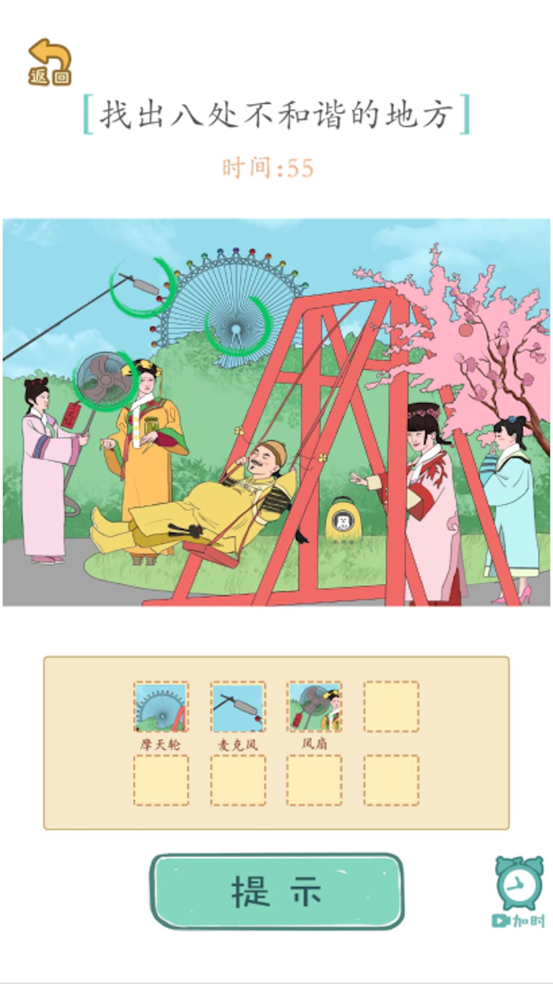 Traveling through ancient times to find faults is an interesting puzzle game. Various elements are added to the game to bring you more fun. In the final process, you can feel various classic scenes, vivid portrayal of characters, and immerse yourself in the story. Unlock tasks in the plot, let you experience the super popular game mode, you can participate anytime, anywhere.