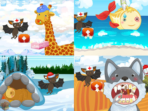 1. GIRAFFE – he got a sore throat! Take his temperature, make him a cold compress and give him some medicine!