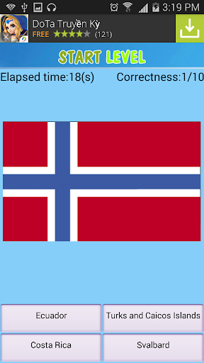 - Funny quiz function helps you check the memory of the flag of the country. The puzzle is divided into 5 different difficulty levels suitable for all ages, levels. With each level the player will have to answer correctly> 90% to pass to the next level.