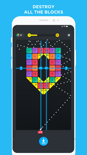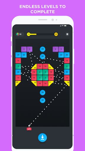 Keep playing to build your skills and work your way through a range of relaxing and challenging levels. Use your problem-solving skills to break all the bricks before they reach the bottom. Simply aim and swipe to fire your balls, and enjoy watching them bounce off the bricks to break them. With limited moves, you’ll need to choose your angles wisely before shooting. There is nothing more satisfying than wiping out all the bricks with an accurate shot!
