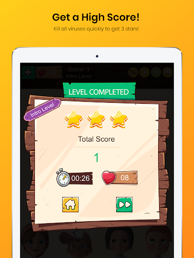 - Tap on all the viruses as fast as you can to kill the virus and earn more points!