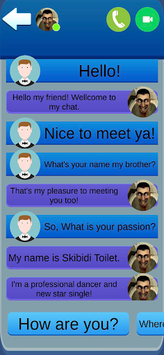 Skibidy Toilet Talk Fun is a calling, texting and facetime simulation game with Monster Toilet. You will turn into Monster Toilet's cheerful friend and share the joys of the day together.