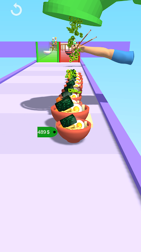 You need to stack your ramen soup front of you ! Dodge obstacles to reach finish line