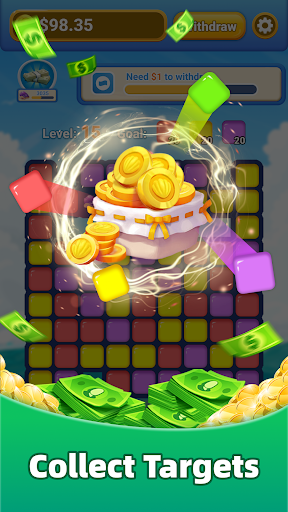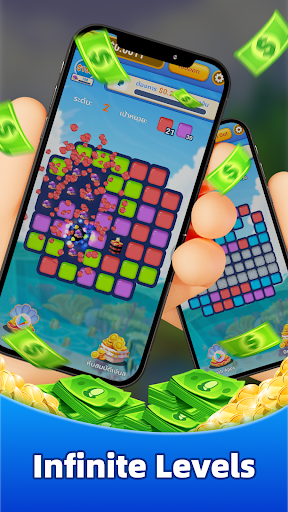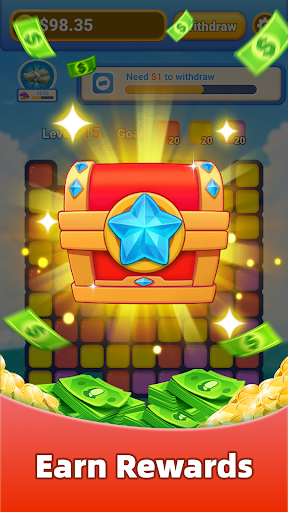 Unlock exciting boosters such as the Bomb to blast your way through even the toughest levels. With each successful level completion, earn coins that can be exchanged for real money.