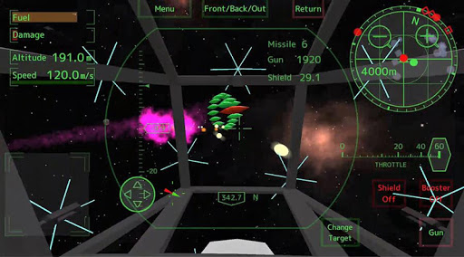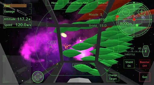 初期装備はマシンガンです。ミッションを進めると誘導ミサイルやシールド等が使用できるようになります。また、ベースに戻る事により補給を受ける事もできます。