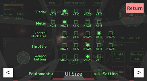 また、メニュー画面からボタンやレーダー表示のサイズなど、操作しやすいようにカスタマイズが可能です。