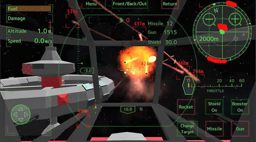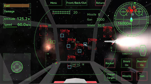 HUD(ヘッドアップディスプレイ)を模した表示を採用、臨場感あふれる一人称視点で操作できます。視点切りかえも可能です。