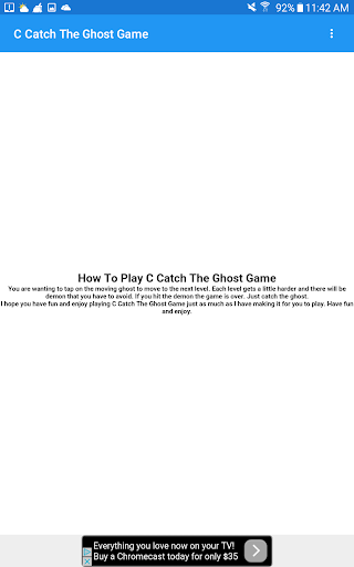 How to play C Catch The Ghost Game is you try to tap on the ghost while it moves all around on your screen. You will have to avoid the demon and not hit it. Only catch the ghost to move to the next level.