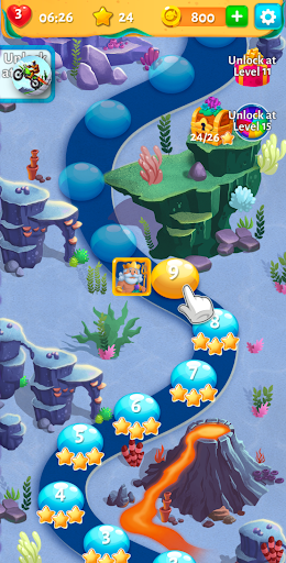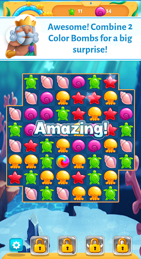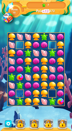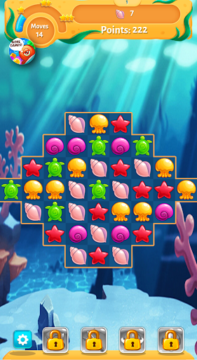 Fish Story is a cool match 3 game with a water and fish theme. The game starts with a daily bonus. log in daily to get a present each day and for the big present on day 7. Help Neptune to reach the goal of each level by matching 3 types of seashells, turtles, sea stars, and other sea creatures. Each level is unique and challenging in its own way. Make use of the special powerups to finish the harder levels. Get in the underwater mood in Fish story. The game has 100 levels and is created by the Softgames studios, ensuring a quality game.