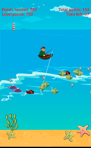 Try to hunt as much as you can from the fish , there are a lot of them in many sizes and shapes , each fish has points depending on its size , try to end the level in high score to go to the next level