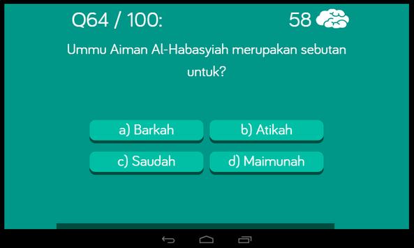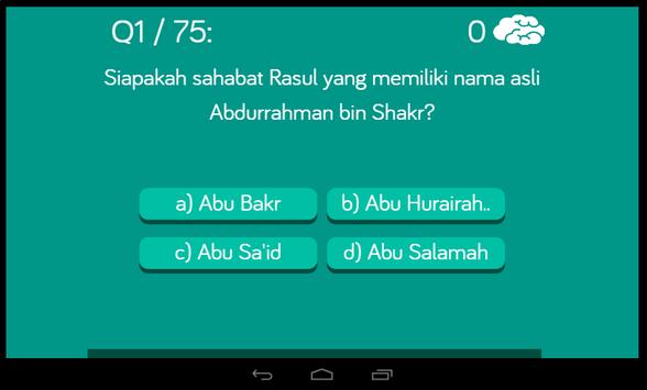 Kuis Sirah Sahabah adalah game edukatif yang membahas mengenai sirah sahabah (sahabat) dan sahabiyah (sahabat wanita). Pemain akan disughkan 100 pertanyaan dengan empat pilihan ganda. Pertanyaan dibagi dua, yaitu 75 pertanyaan untuk kategori sahabah dan 25 pertanyaan untuk kategori sahabiyah. Pemain juga bisa menggunakan fitul "All" yang dapat memainkan 100 pertanyaan sekaligus. Setiap satu pertanyaan berbobot nilai 1 per jumlah total pertanyaan. Pertanyaan akan disuguhkan secara random setiap kali sesi permainan.