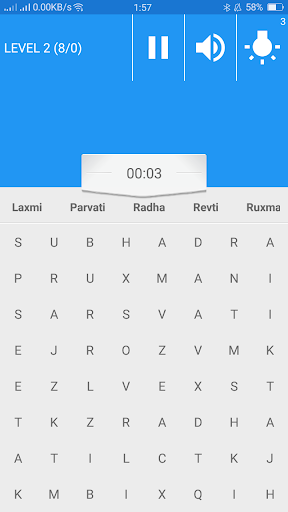Words: The traditional word find playmode. Just find all the words from the list in the shortest time possible.