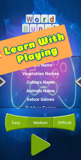 This app is new and also easy to use. And it also help to learn hard English words and also improve your vocabulary. Anyone use this app. This app is mostly good for the child age b/w 1-8 yrs old. In this app there are all kind of names like...(Vegetables, Fruits, Animals, etc....) so the child can learn with playing. Please try the app at least one time if you don't like then uninstall it.