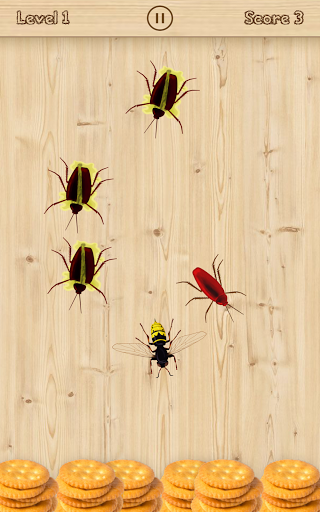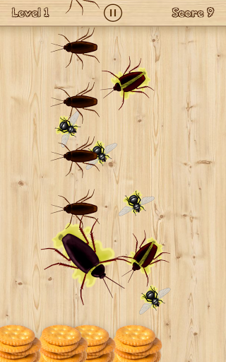 Destroy all cockroaches and flies without letting them eat all the cookies. Beware of wasps, they must not be touched.