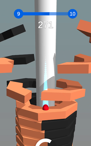 Press and hold on the screen to lower the ball and break all the colored bricks while being careful of the black ones.