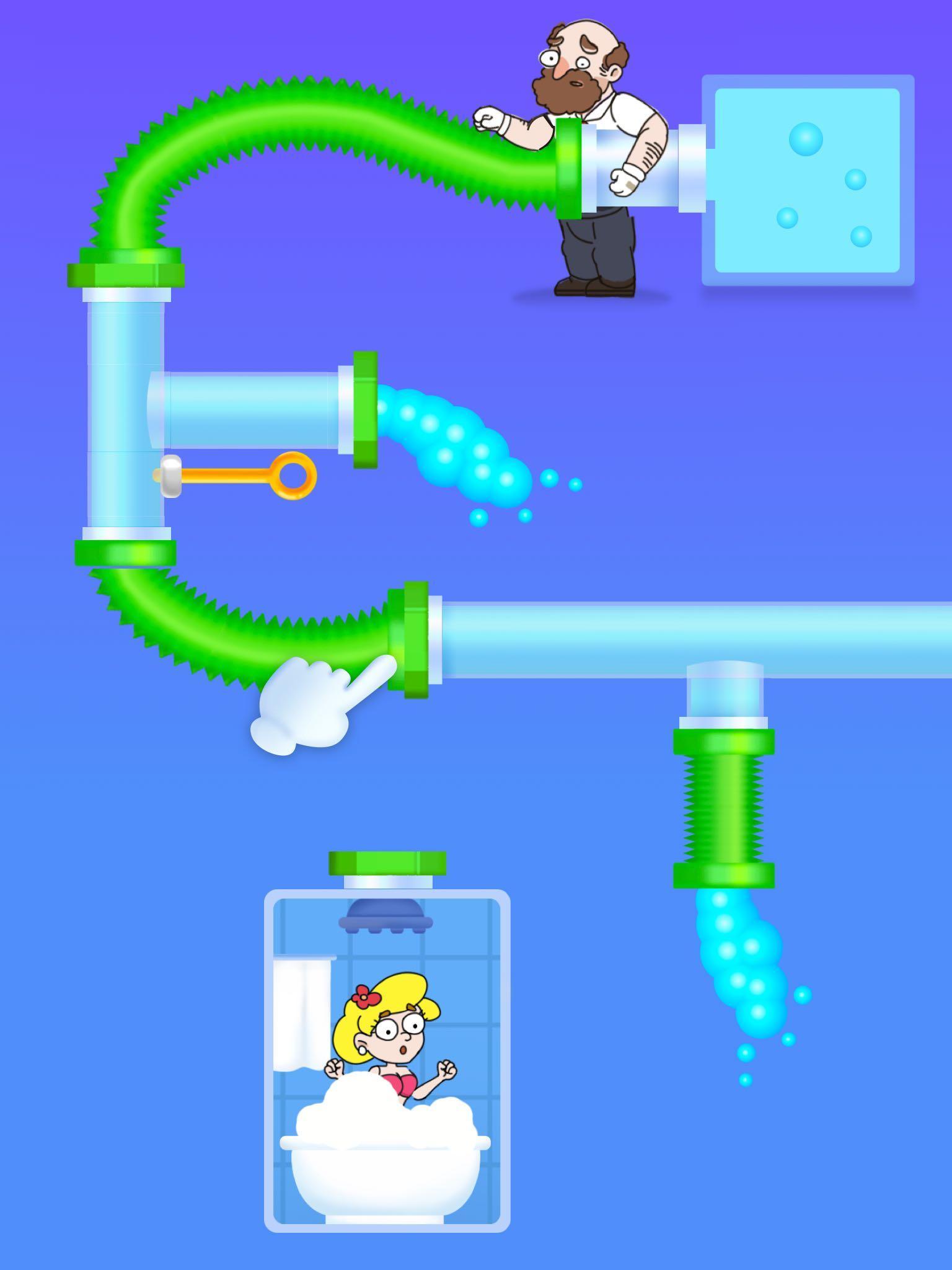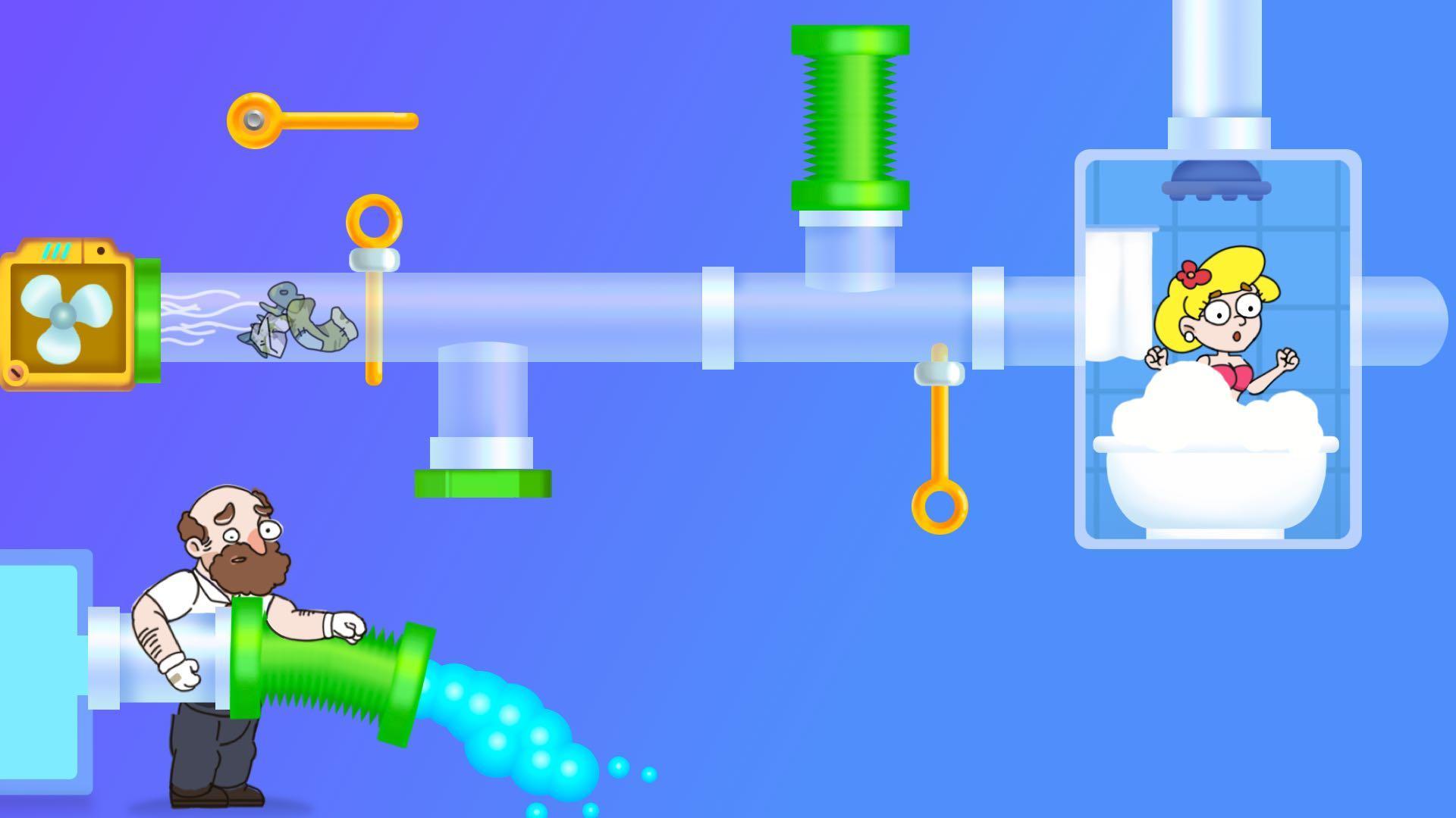 As a skilled plumber, you need to use your brain and combine your patience, brain power and spatial logic skills, to follow the correct steps to pull out the stick and help the girl avoid the obstacles in the pipe and connect the pipes!