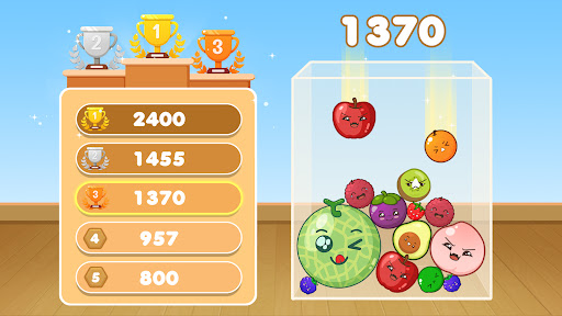 - Drop and match two types of fruits to merge them into the next larger fruit in the cycle like fruit evolution, boosting your score.