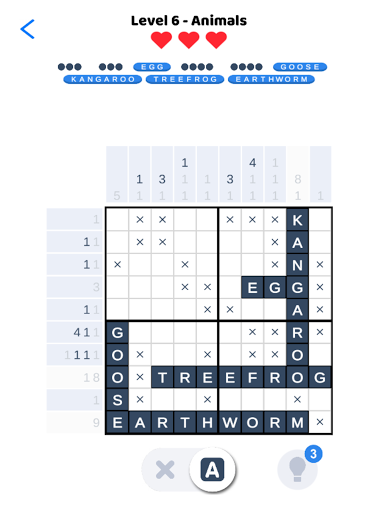 Welcome to Nonogram Words – an addictive logic puzzle game that offers a brand new gaming experience. Enjoy logic number puzzles that combine classic nonograms with crosswords. Fill the grid to reveal hidden words and solve crossword puzzles. With enhanced nonogram gameplay, it's easy to exercise your logic and enrich your vocabulary at the same time!