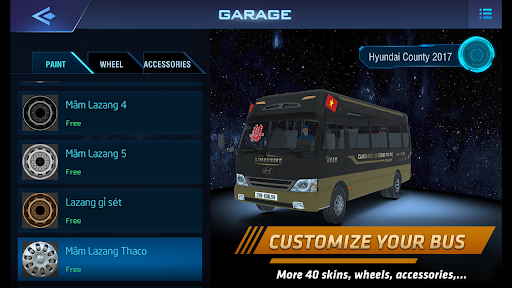 - There is a GARAGE system to upgrade the vehicle, with more than 40 types of paint colors, nearly 20 types of wheel lazang wheels and dozens of additional accessories for each type of vehicle such as helmets, flags, car assistants, ...