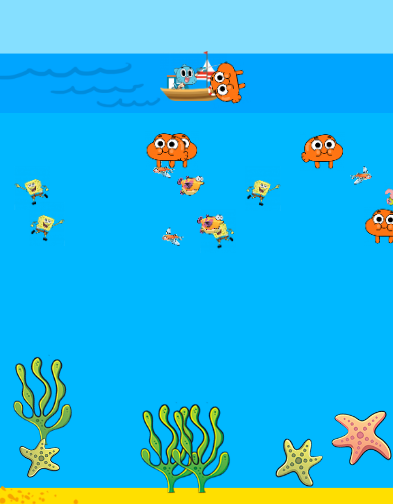 You will find Gumball, Darwin, SpongeBob and his friend Patrick