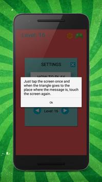 Releases the whatsapp conversation to reach the next level, just tap the screen and begins! you should try clicking the triangle to the time it reaches the conversation icon, make no mistake and you will have to start over. With more higher level more touches you will need to release the WhatsApp conversations. When you get levels share with your contacts to challenge them and be the best playing Whatsgame!