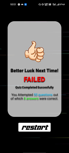 If all answers are wrong you will get the score as 'FAILED'.